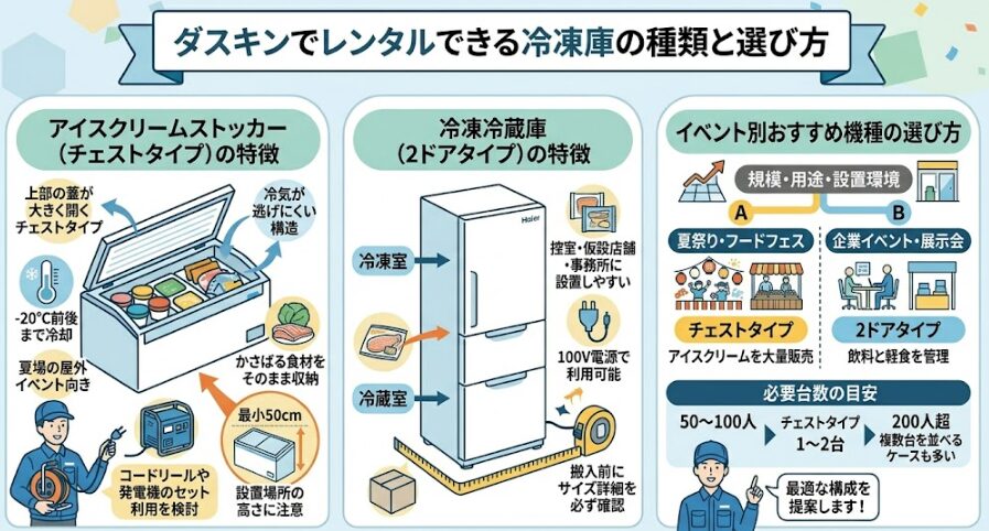 • ✅ ダスキンで借りられる冷凍庫の種類と選び方がわかる