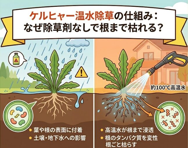 ケルヒャー温水除草とは?除草剤なしで根まで枯らす仕組み