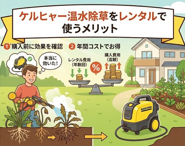 ✅ ケルヒャー温水除草をレンタルで試す具体的な方法と費用がわかる