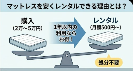 マットレスのレンタルは、購入と比べて初期費用を大幅に抑えられる点が最大のメリットです。
